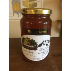 Miel du Larzac 500g, liquide. Principalement thym, serpolet et chardon