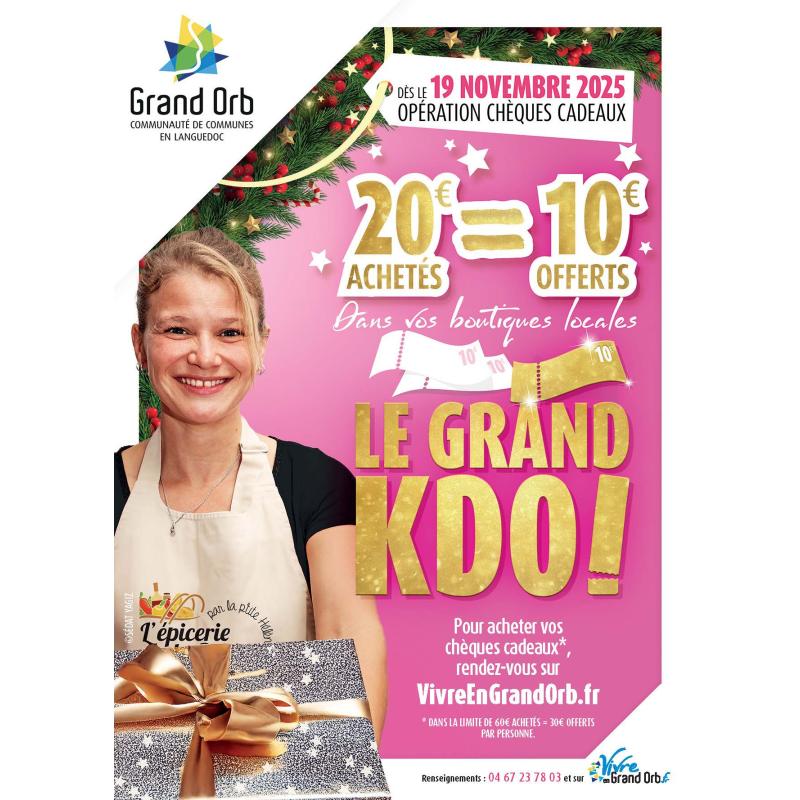 - J’achète mes chèques cadeaux en ligne sur VivreEnGrandOrb.fr, onglet Chèques Cadeaux dès le Mercredi 19 novembre à 9h.